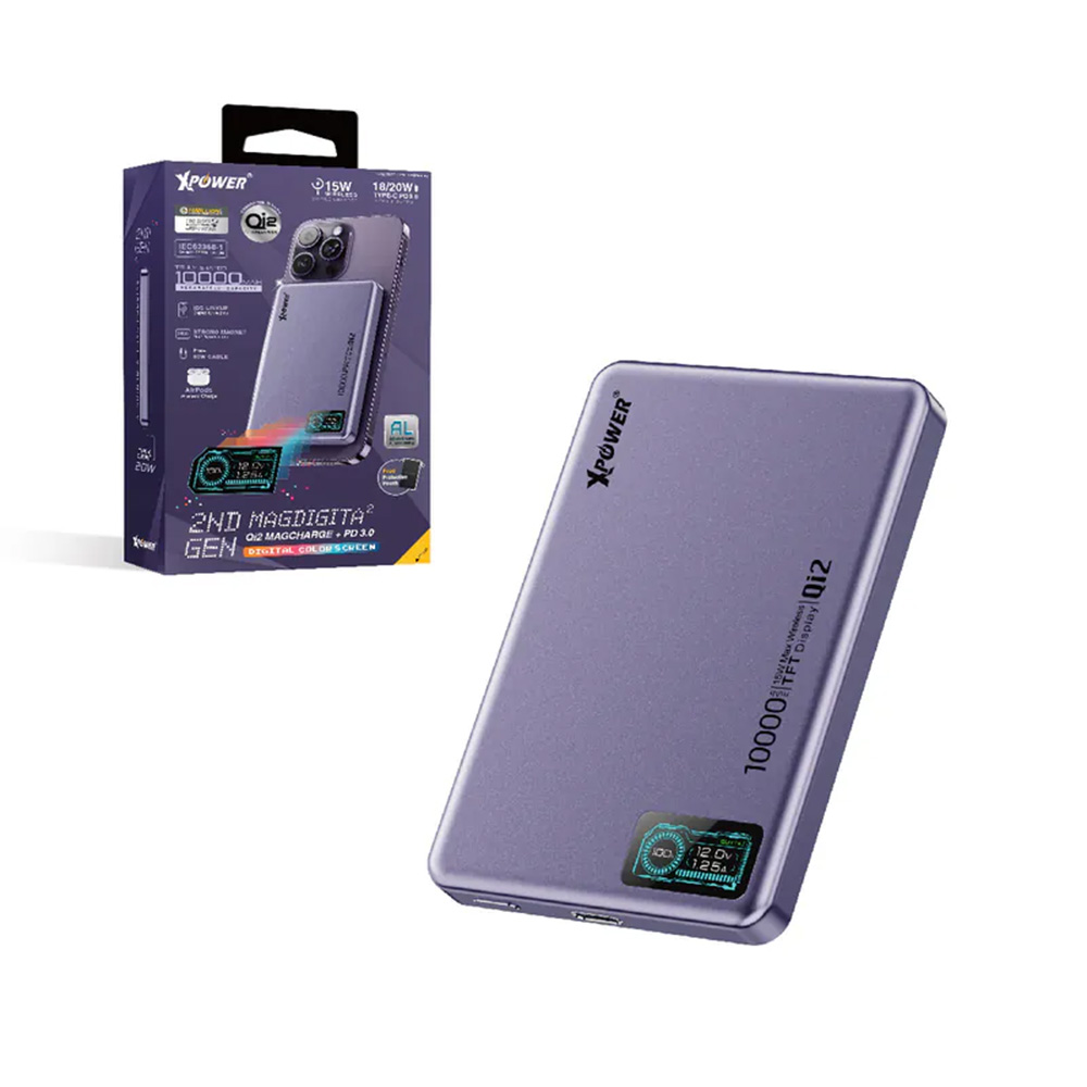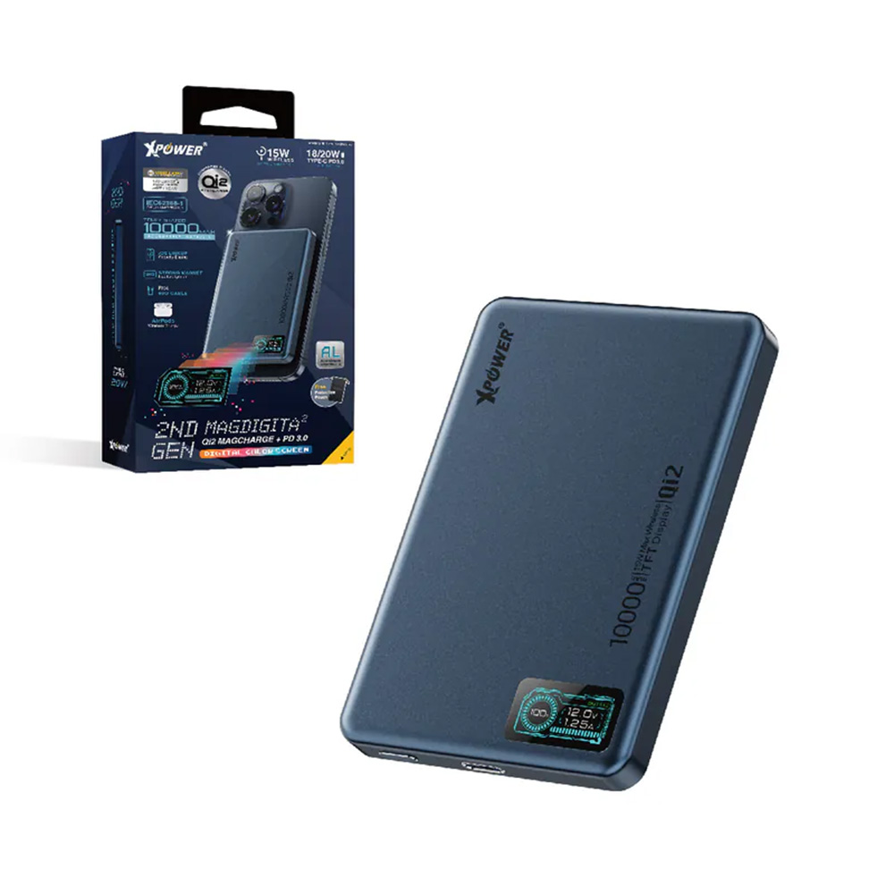 XPower MagDigita² 第2代 彩屏顯示 鋁合金外殼10000mAh PD3.0+ QI2磁吸移動電源(Black)