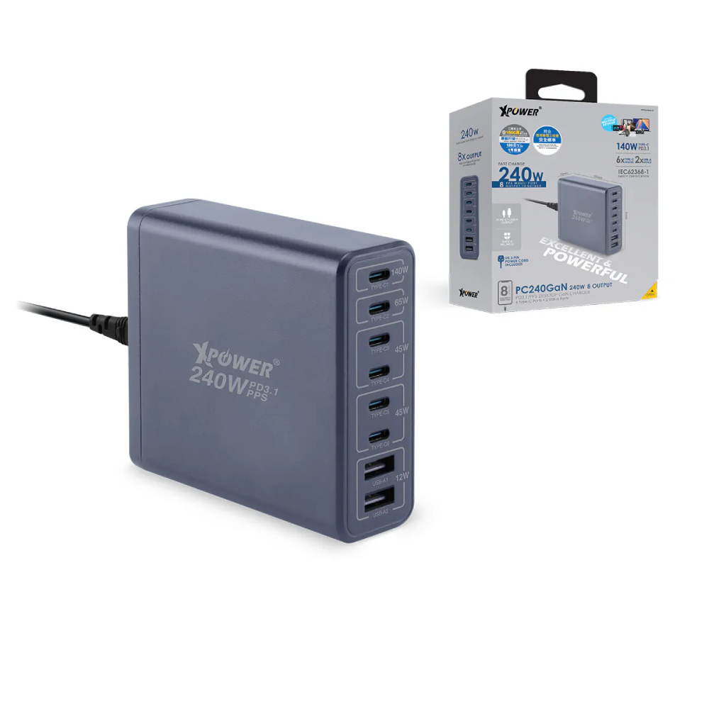 XPower PC240GaN 240W 8輸出 PD3.1/PPS 桌上型GaN充電器(Black)