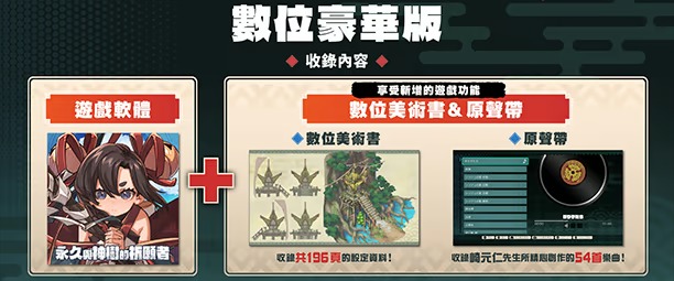 - 包含能在遊戲內欣賞共196頁的數位美術書,以及傾聽由Hitoshi Sakimoto精心打造,共54首樂曲的數位原聲帶。