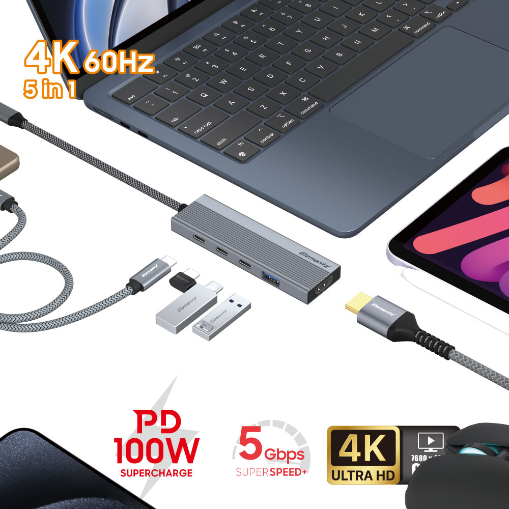 - 5 in 1 USB-C Hub