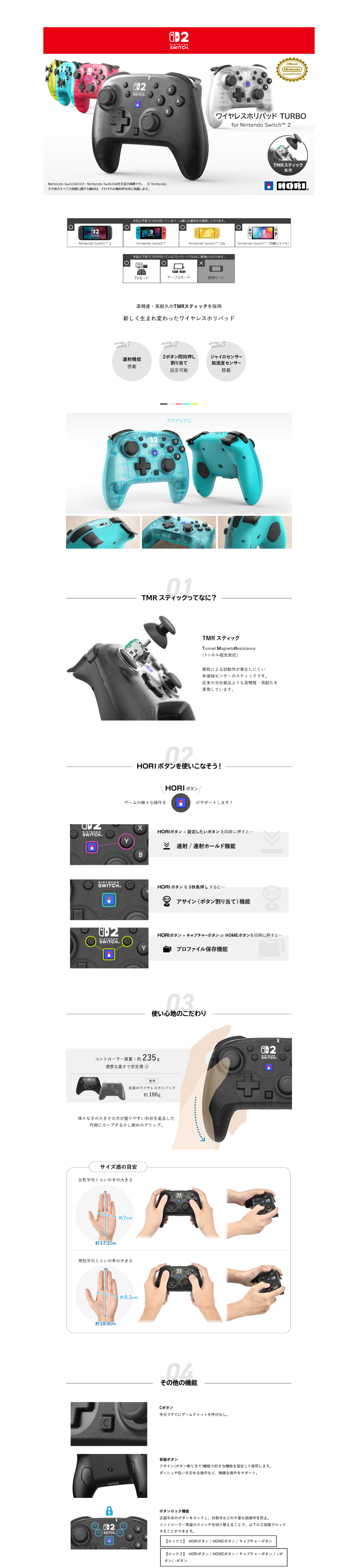 - 採用高精度、高耐久的 TMR 類比搖桿