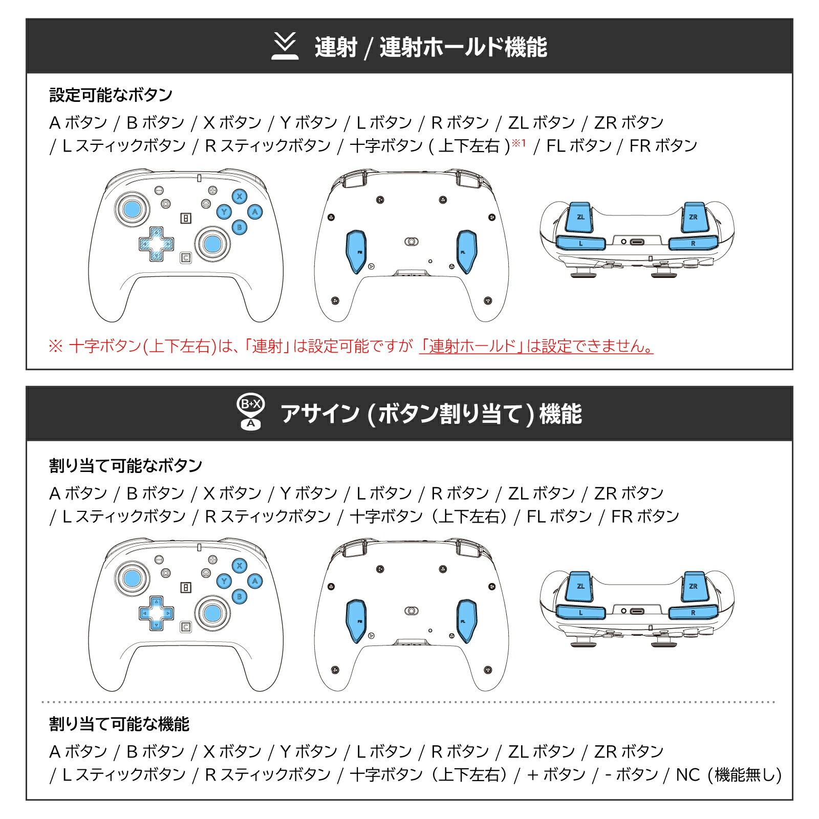 - 支援「雙按鍵同時觸發」設定(例如:A鍵可設定為同時觸發B+X)