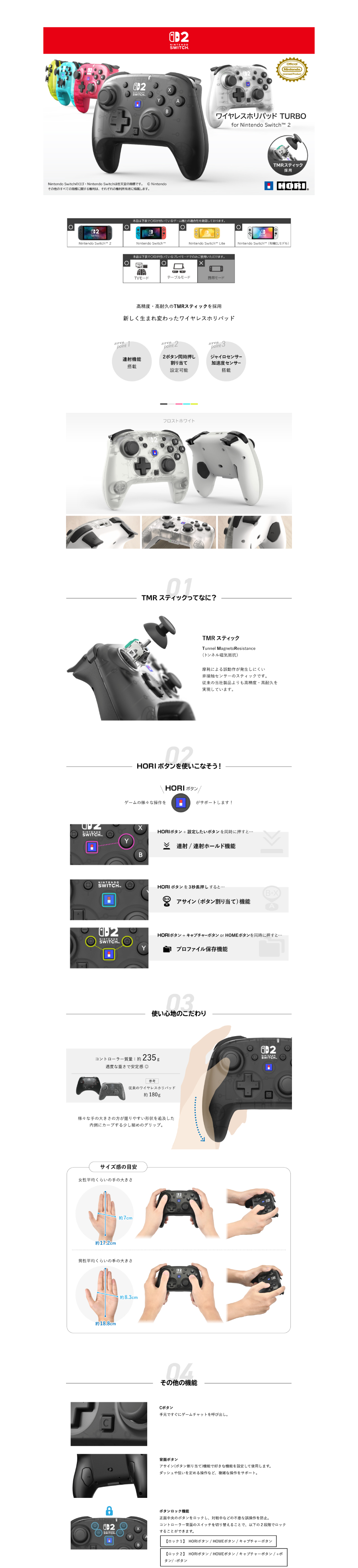 HORI TURBO 無線藍牙控制器(兼容Switch2)(霜白色)