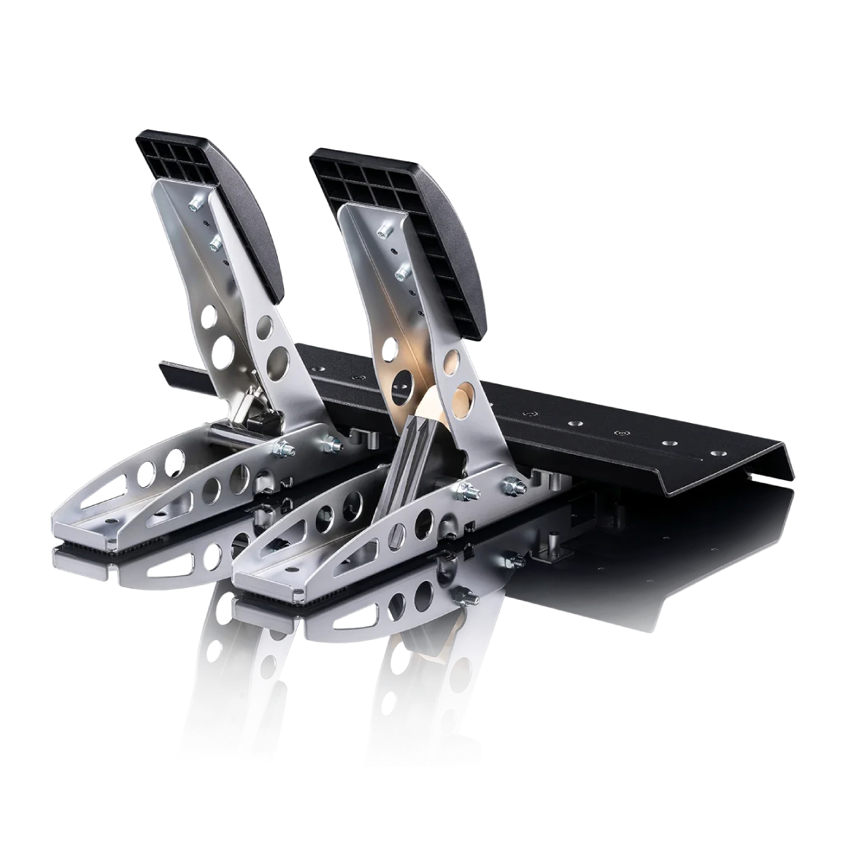 - 全金屬結構(不含踏板面)。踏板採用厚重鋼材製成,可防止未固定於賽車架時在地板上滑動