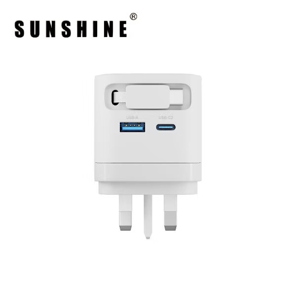 SUNSHINE MPF-35BK 2端口插牆式充電器 伸縮USB-C充電線(35W-黑色)