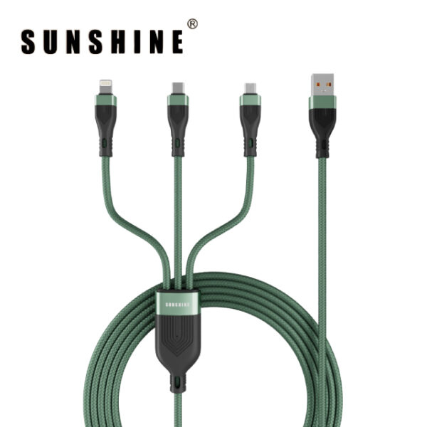 SUNSHINE CAF-ACBK 三合一快速充電線 (USB-A 轉 Micro/Lightning/USB-C)(60W-120cm-黑色)