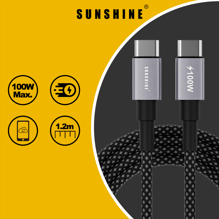 SUNSHINE CAD-20BK 100W USB-C 快速充電線(200cm)