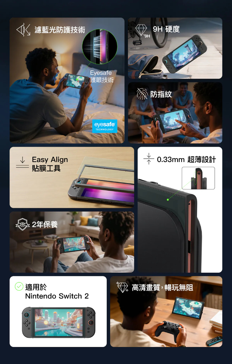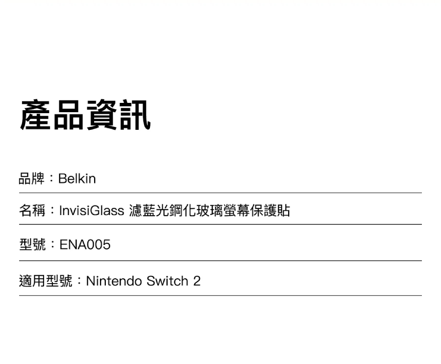 Belkin ScreenForce TemperedGlass 鋼化玻璃螢幕保護貼 (適用於 Nintendo Switch 2)(濾藍光)