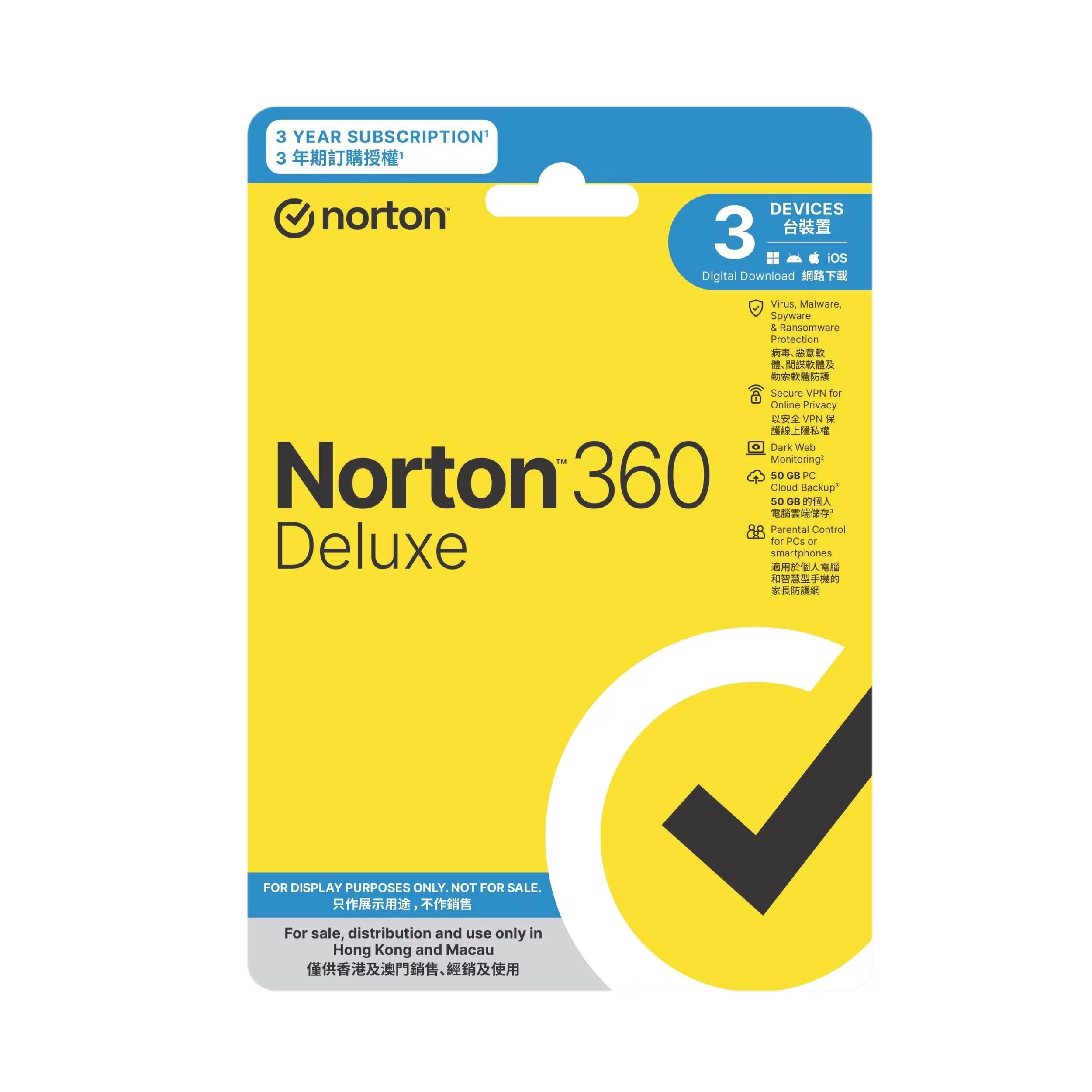 Norton 360 防病毒軟體 進階版(1年-3台)
