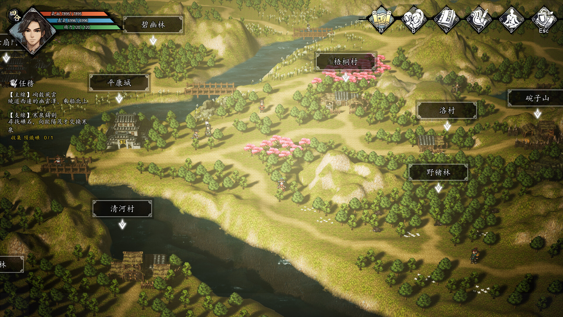 遊戲內有近百張地圖供玩家探索,關外、天山、中原等等……不同區域將有全然不同的天氣與地貌。玩家可自由探索繁華城鎮,山洞秘境,山寨據點等別具一格的麗景。