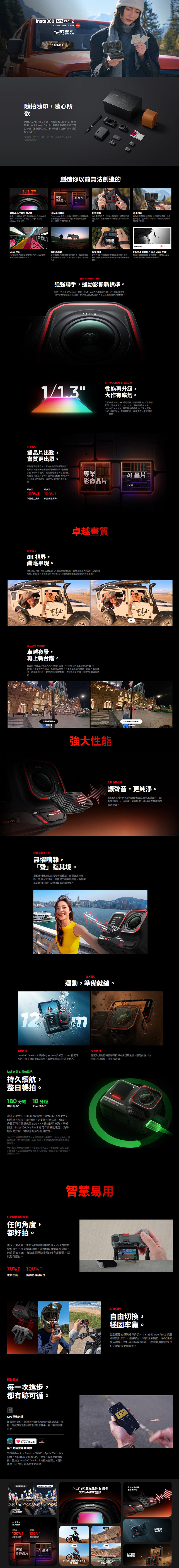180分鐘 * 在 25°C 的實驗室環境下,使用長續航模式,錄製 1080p24fps 普通錄影影片(關閉運動 HDR)測得。實際續航時間可能因不同條件而異。