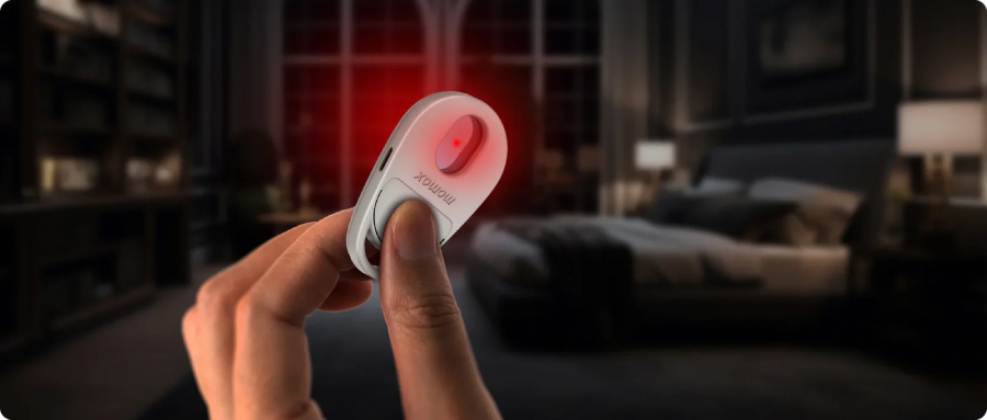 以紅燈照亮鏡頭,用於視覺檢測和快速識別隱藏的攝影機。它可以偵測偽裝成鬧鐘、檯燈、牆壁插頭和床周圍其他物體的攝影機。提供保護隱私的一個小工具。