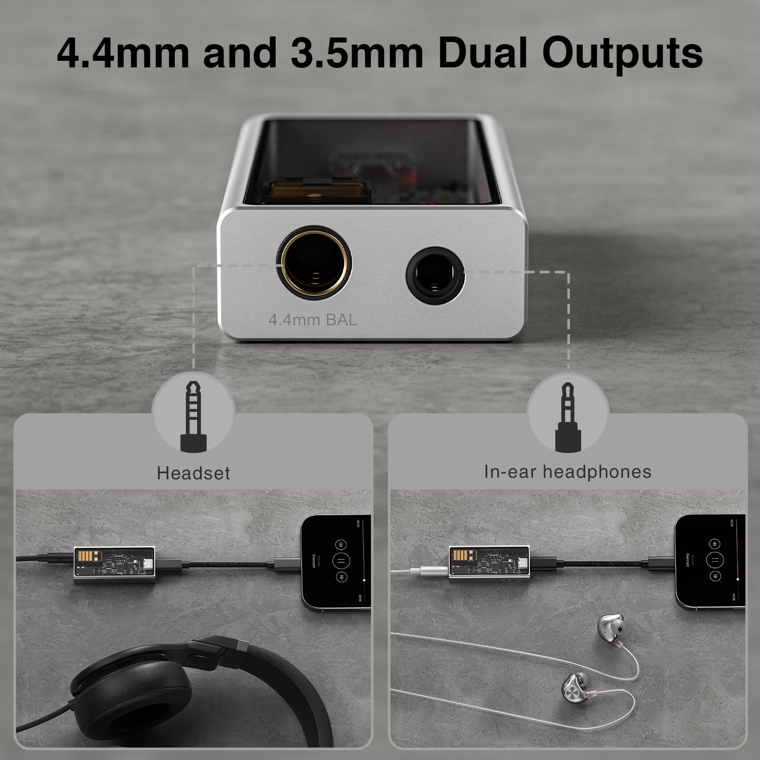 M15C 配備四組 CMA 引擎,支援 3.5mm 單端輸出與 4.4mm 全平衡輸出。並具備手動增益調整功能,使用者可依個人喜好、耳機特性或音響系統選擇合適的增益模式,適用於各種應用與裝置。