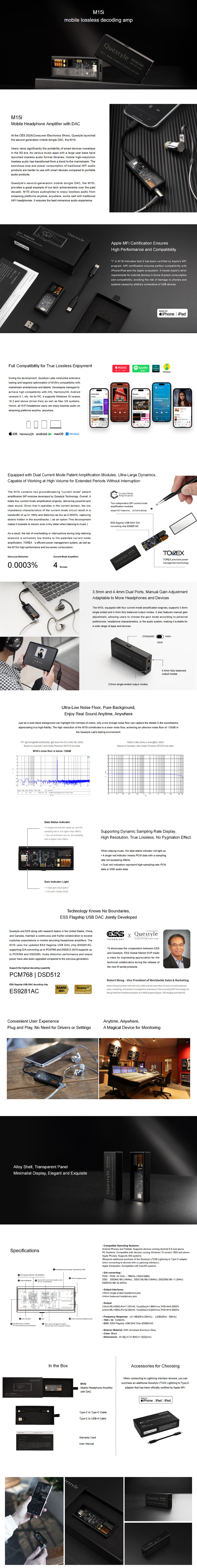 M15i 採用 ESS 旗艦 DAC ES9281AC,能完美處理最高至 PCM768kHz/32bit 與 DSD512 的各種音訊格式,展現強大且純淨的無損音質。