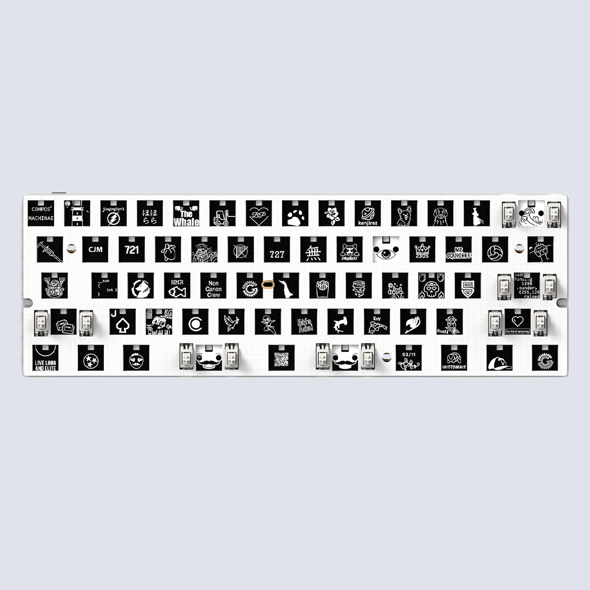 僅包含 Wooting 60HE v2 電路板,搭配 Poron 泡棉夾層墊。可選擇僅購買模組,或加購軸體、鍵帽與外殼。需自行組裝。