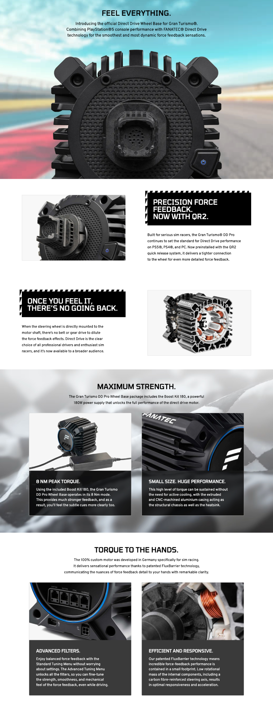推出 Gran Turismo® 的官方直接驅動輪距。將 PlayStation®5 主機效能與 FANATEC® Direct Drive 技術結合,實現最流暢、最動態的力回饋感覺。