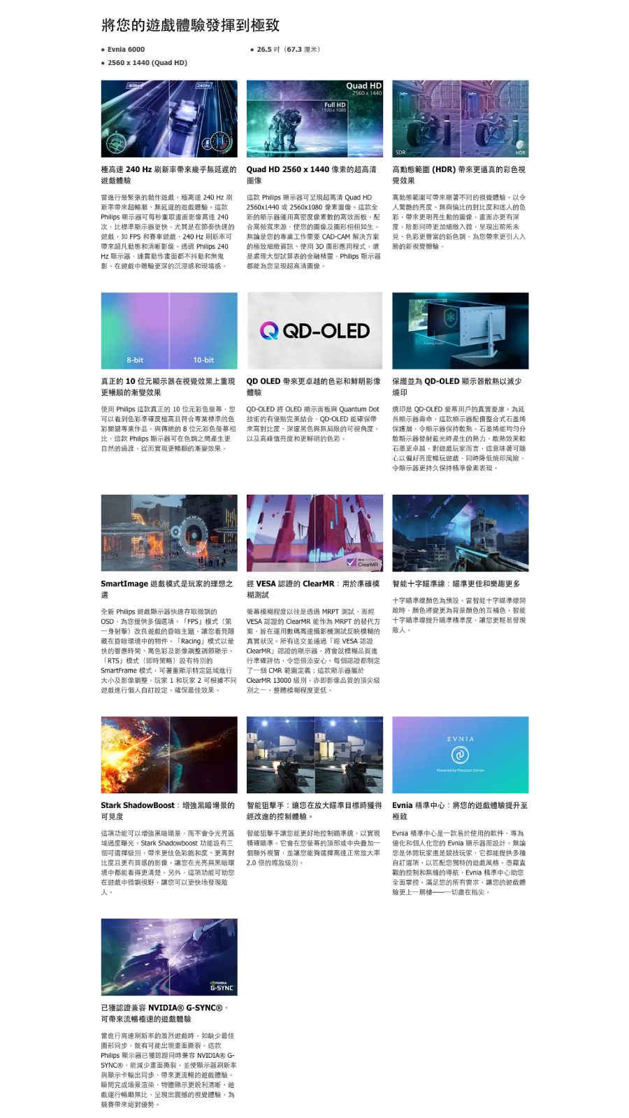 這款顯示器專為高速遊戲而設計,具備 240Hz 刷新率及 QD OLED 面板,完美融合超乎想像的速度與超卓畫質。