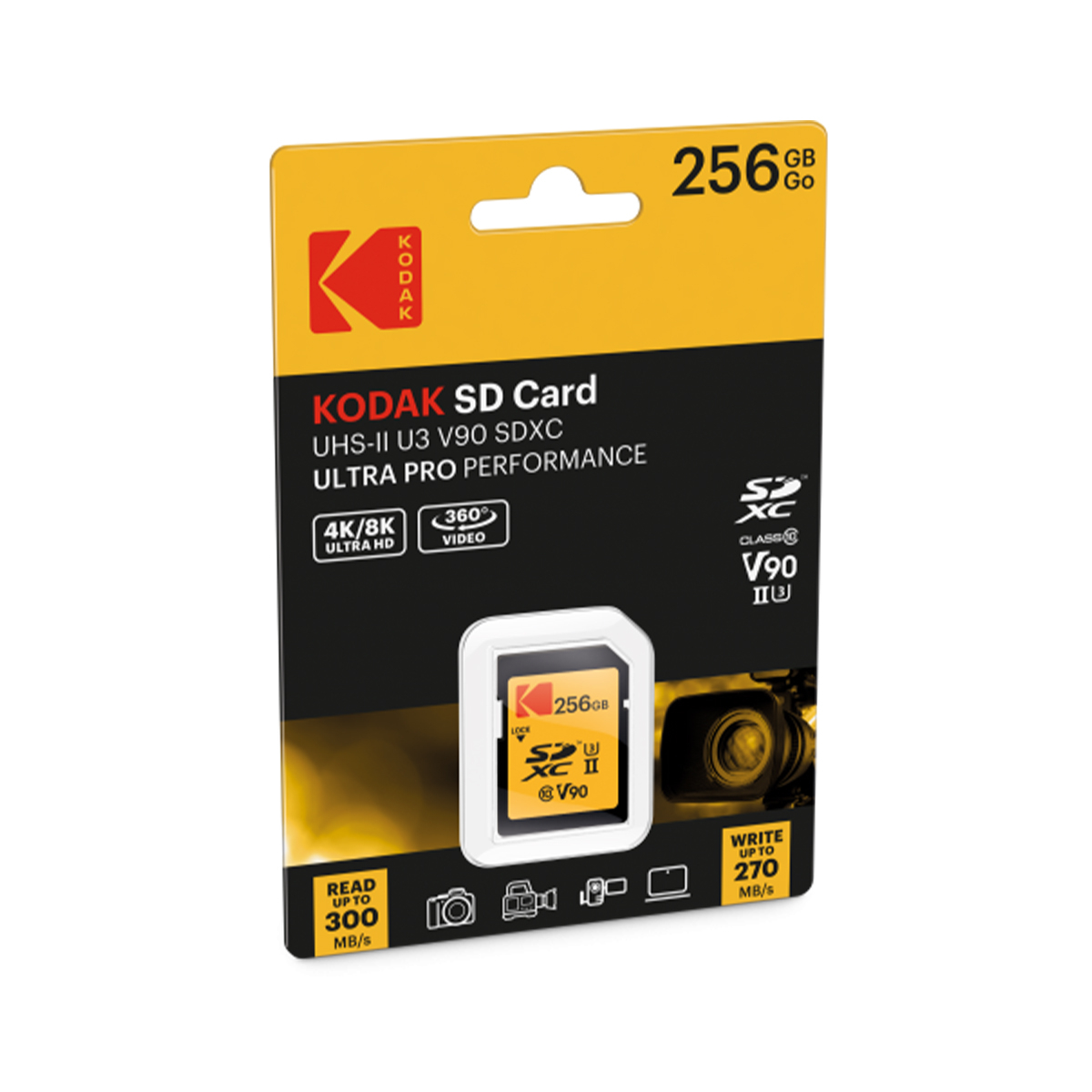 • Kodak SDXC UHS-II U3 V90 memory card offers incredible performance that compliments the downloading, transferring and sharing of apps, photos and videos.