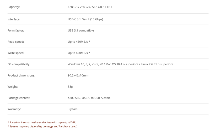 - Interface USB-C 3.1 Gen 2 (10 Gbps)