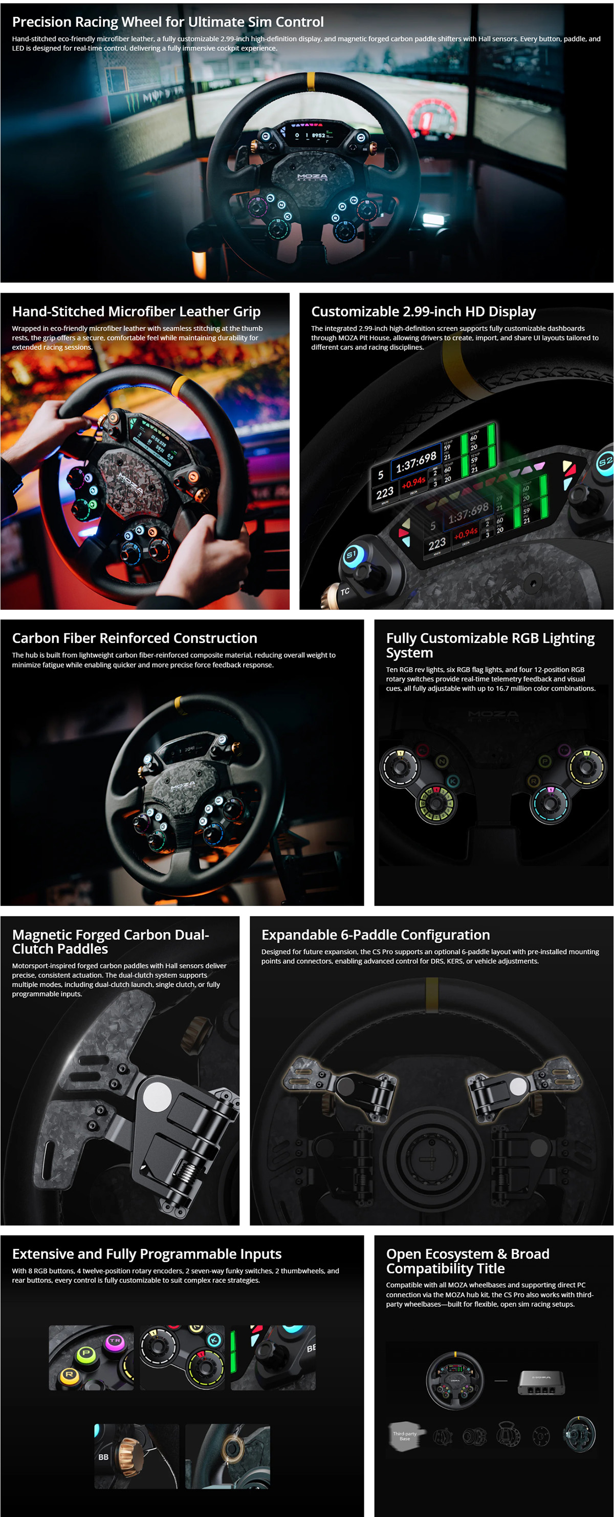 - 相容性:支援所有在售 MOZA 基座,並可透過 MOZA Hub Kit 相容第三方基座