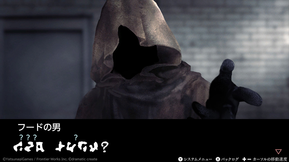 主人公誤入異界,需在與恐怖男子們交流的過程中解讀其語言,以達成逃離的目的。