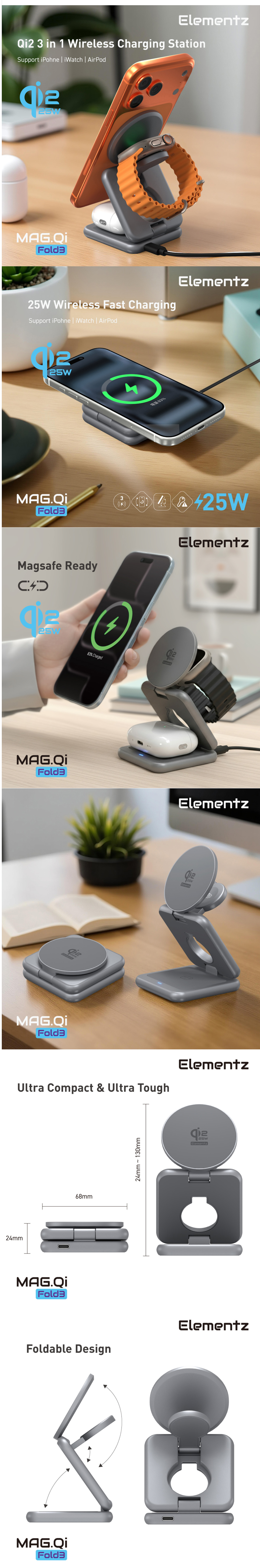 Elementz Mag Qi Fold 3合1磁吸式無線充電座 (MQ-Fold 3)