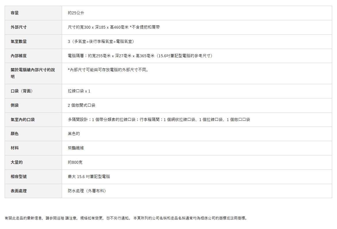 - 筆電隔層可容納最大 15.6 吋筆電
