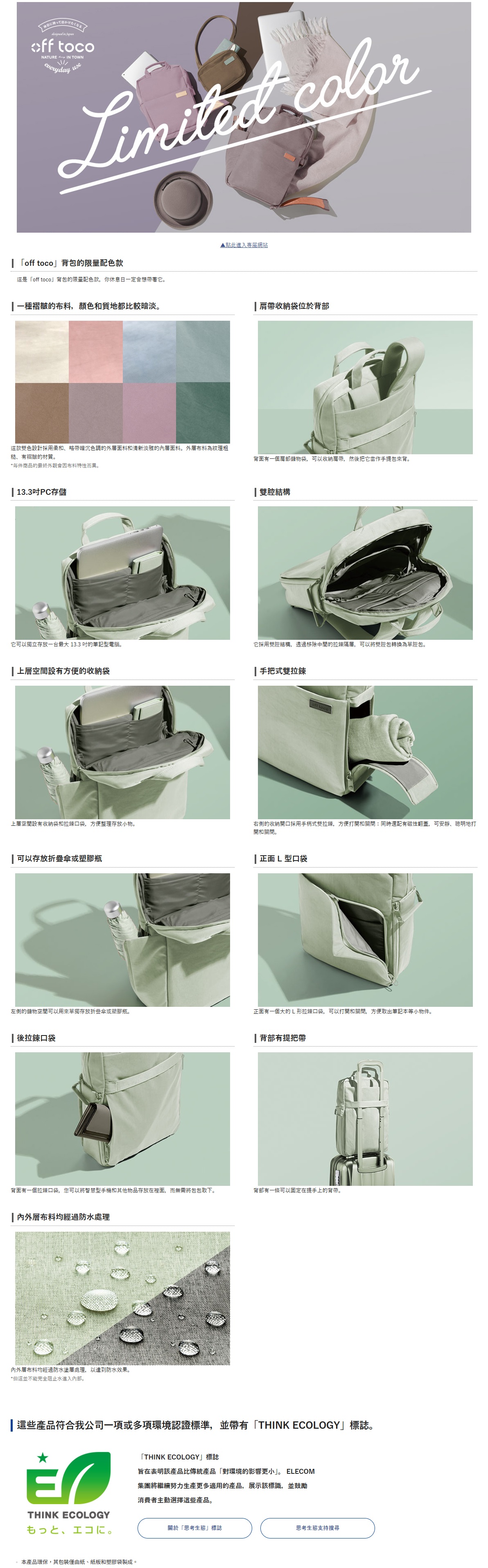 ELECOM off toco Laptop 13.3吋輕巧手提電腦背包(冰雪灰)