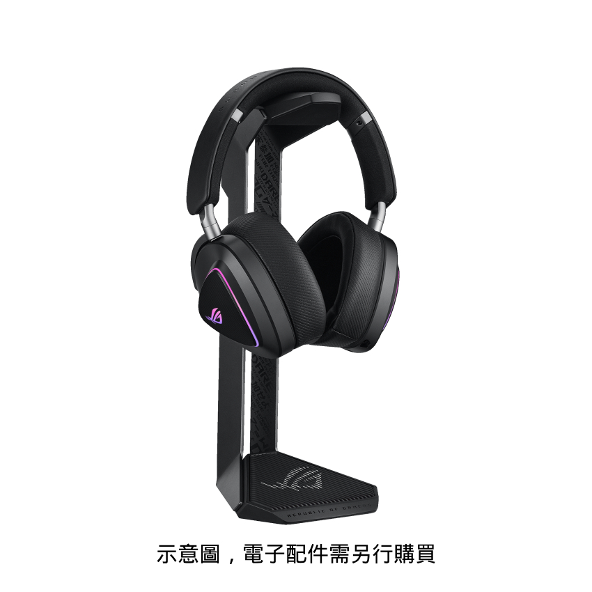 - 專為 ROG 耳機而生:堅固的支架,是您在不使用耳機時,完美展示 ROG 電競信仰的最佳歸宿。