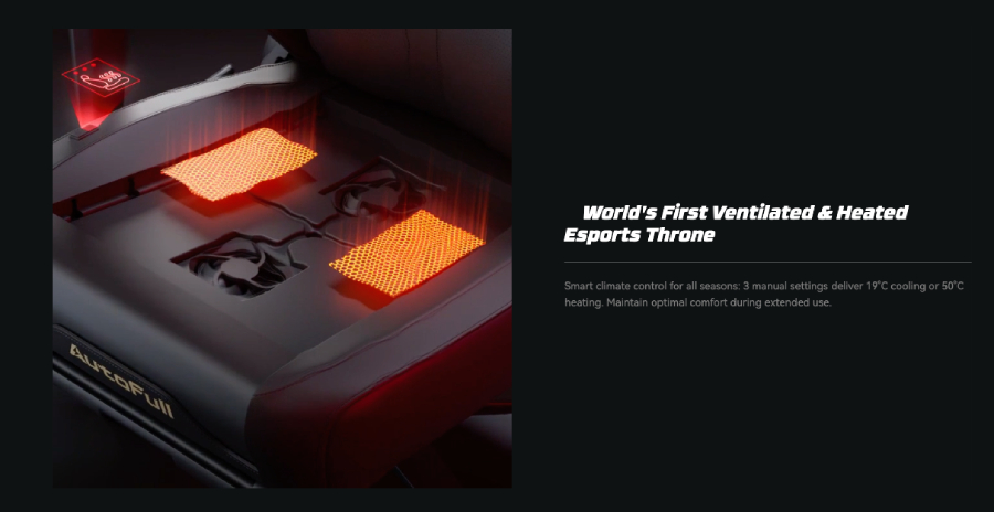 智慧氣候控制,掌握四季:雙渦輪風扇吹送 66°F 涼風,避免長時間遊戲時的不適;碳纖維加熱最高可達 122°F,輕鬆應對冬季寒冷。