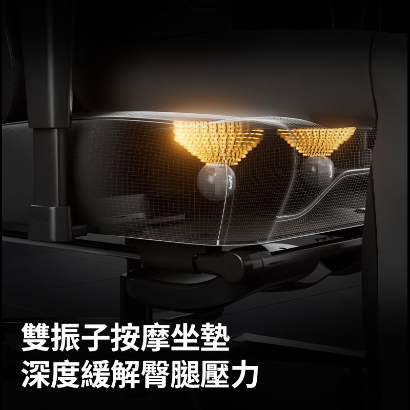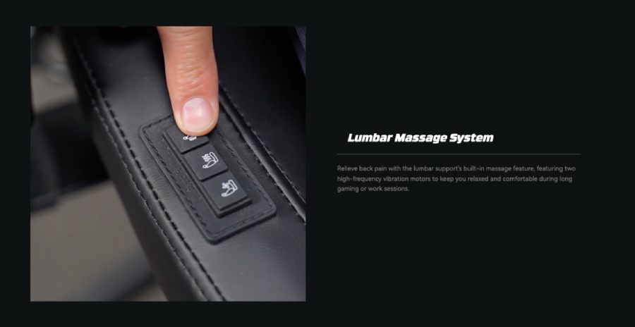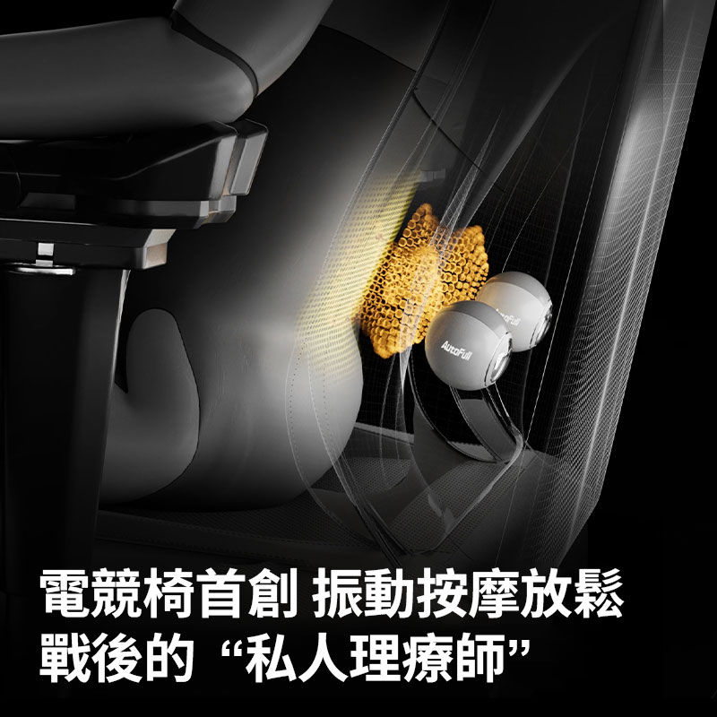 腰部支撐內建按摩功能,配備兩個高頻震動馬達,讓您在長時間遊戲或工作中保持放鬆與舒適。