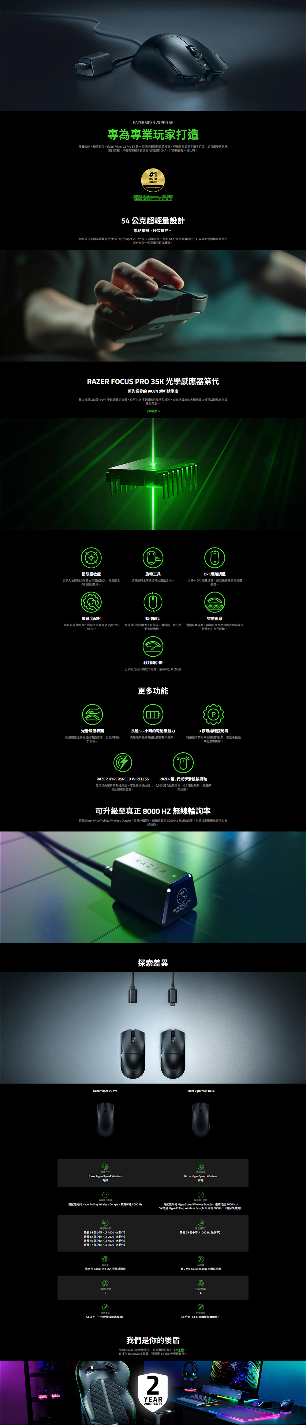 - Focus Pro 35K 光學感測器 Gen-2:專業級追蹤,支援玻璃表面,1-DPI 微調。