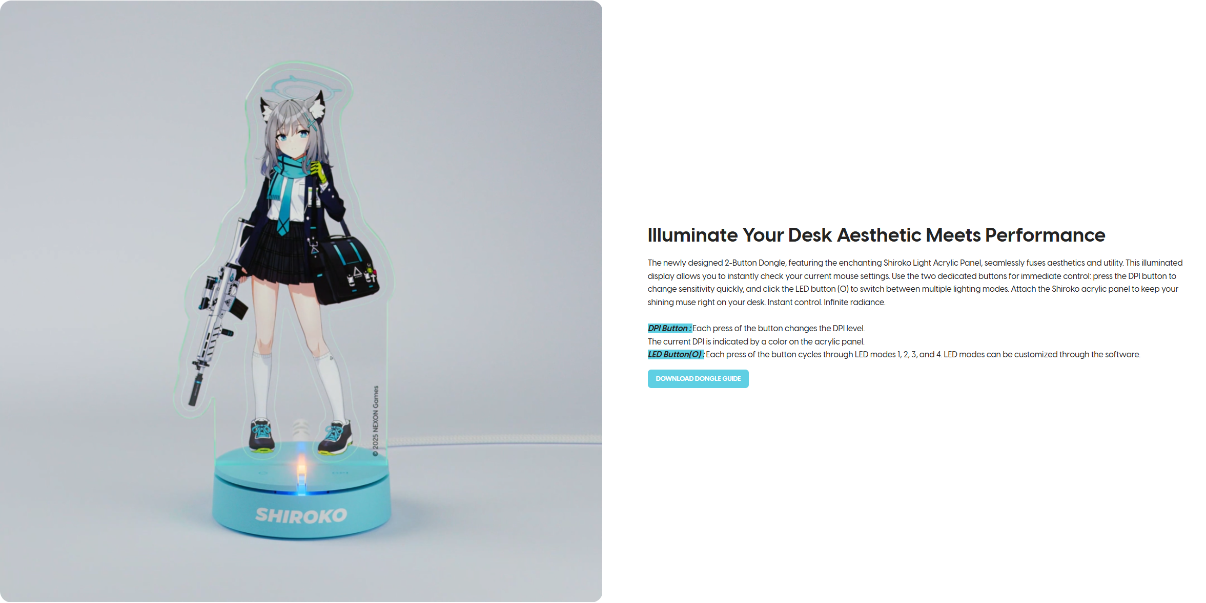 本次亦首度推出全新配件:雙鍵接收器,附有壓克力角色立牌,可擺放於桌面增添《Blue Archive》氛圍。