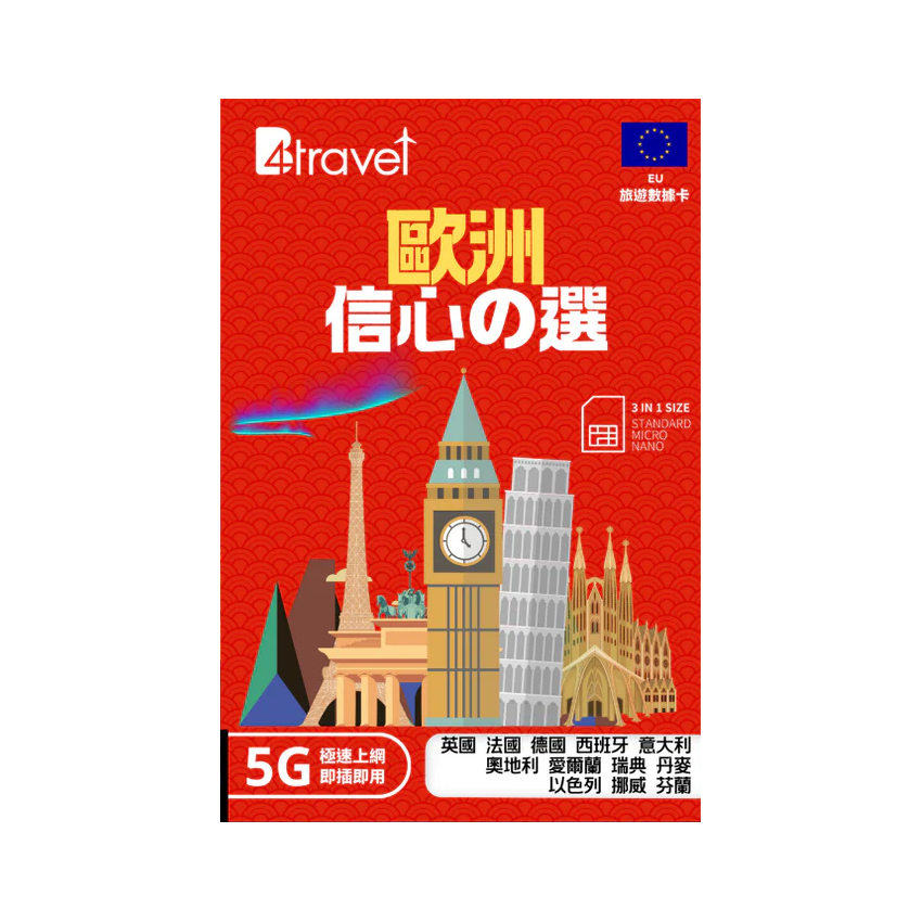 B4travel 歐洲 3天 3GB 5G 無限上網卡 | 電話卡(3日3GB)