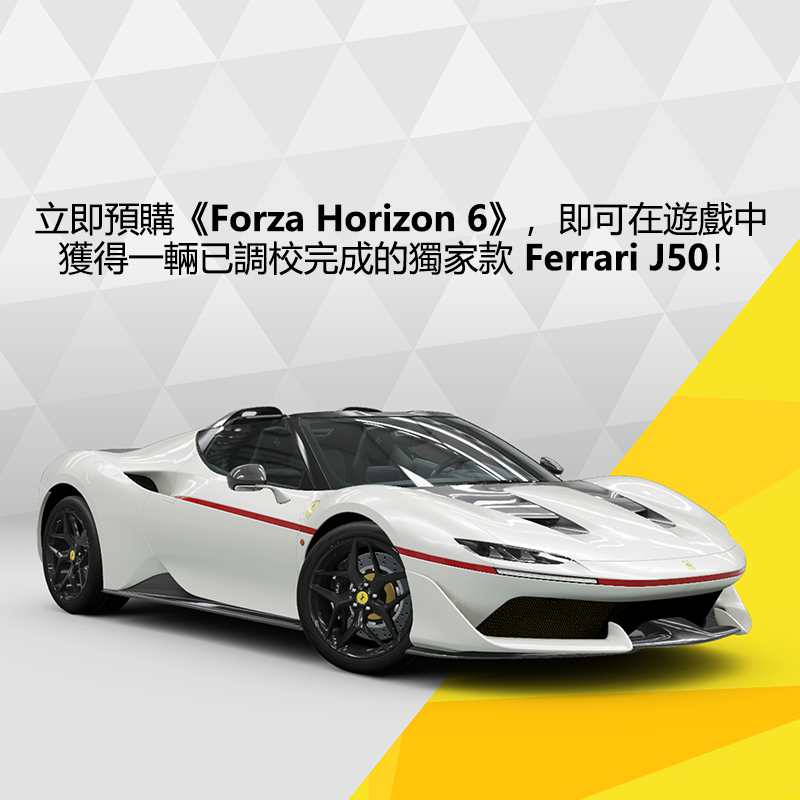預購可獲遊戲內的獨家 Ferrari J50 預先調校車!