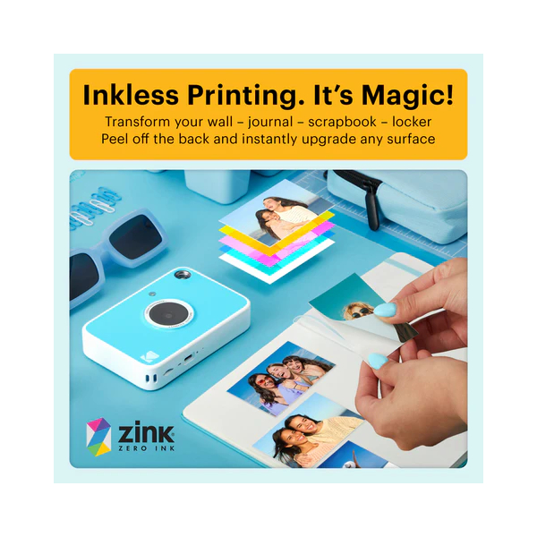 - 零墨水技術 – 不需墨水、碳粉、墨盒或底片。ZINK 技術可製作鮮豔、全彩、背面可黏貼的 2x3 吋照片,並具備防水、防撕裂、防污損的特性。