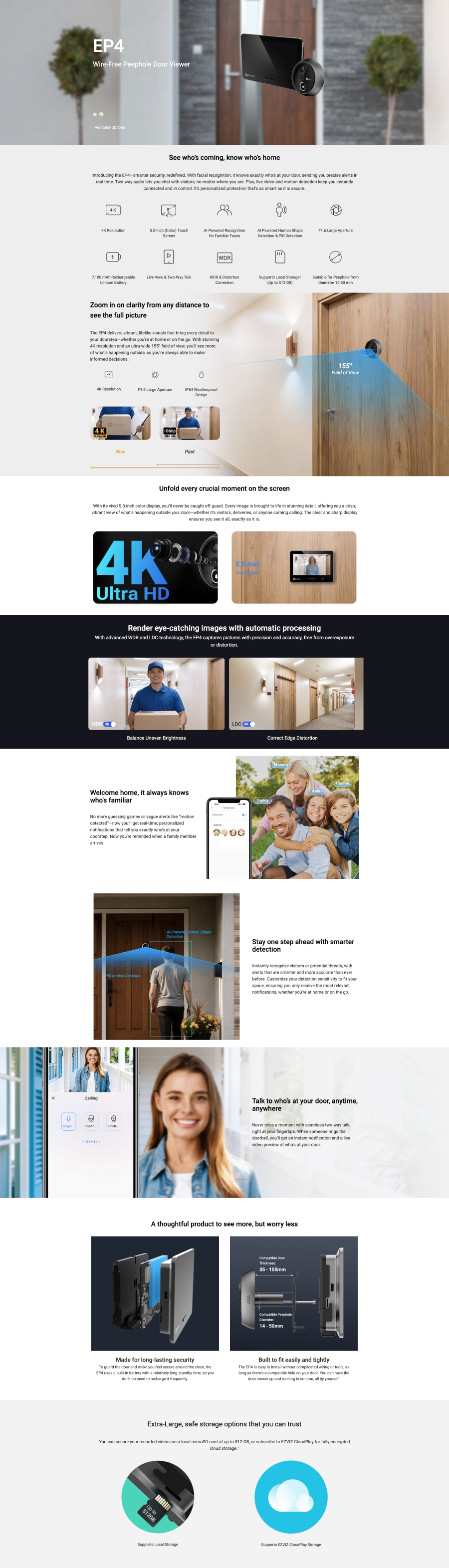 螢幕與底座:103 × 142.4 × 28.4 mm (4.06 × 5.61 × 1.12 英吋);貓眼門鈴:71.7 × 71.7 × 52.7 mm (2.82 × 2.82 × 2.07 英吋) |