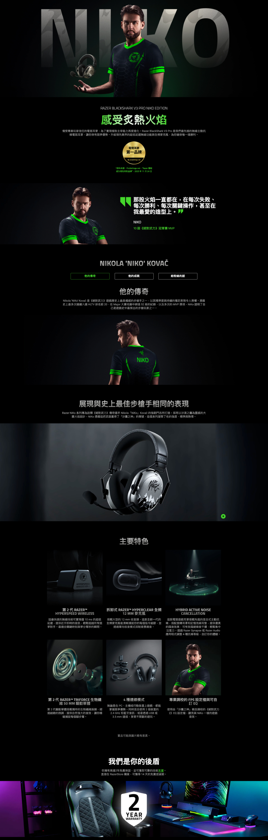 Razer 攜手 CS 傳奇步槍手 NiKo 推出頂規聯名系列周邊 結合專屬火焰元素,靈感來自 NiKo 的「沙鷹之王」稱號,致敬他奪下生涯第 10 座 CS MVP 的傳奇時刻。這亦是 Razer 首次與 CS2 職業選手合作推出完整聯名系列。
