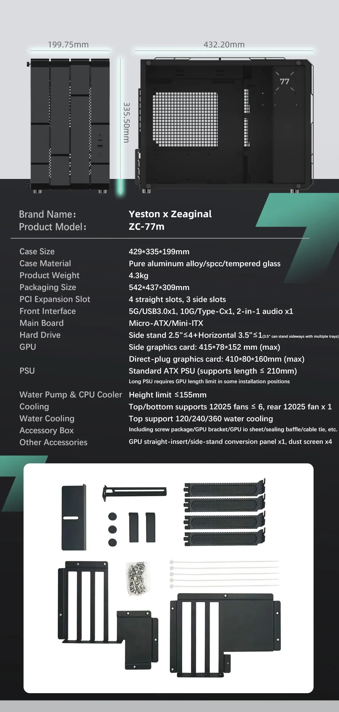 Yeston ZC-77m M-ATX 鋁合金機箱(銀色)