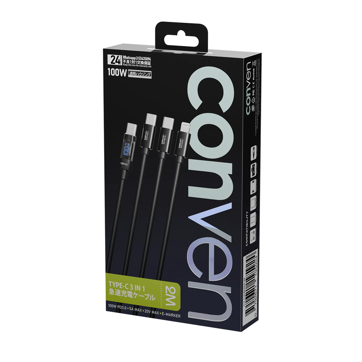 CONVEN Type-C 3合1 100W PD (第4代) 快速充電線(1米)
