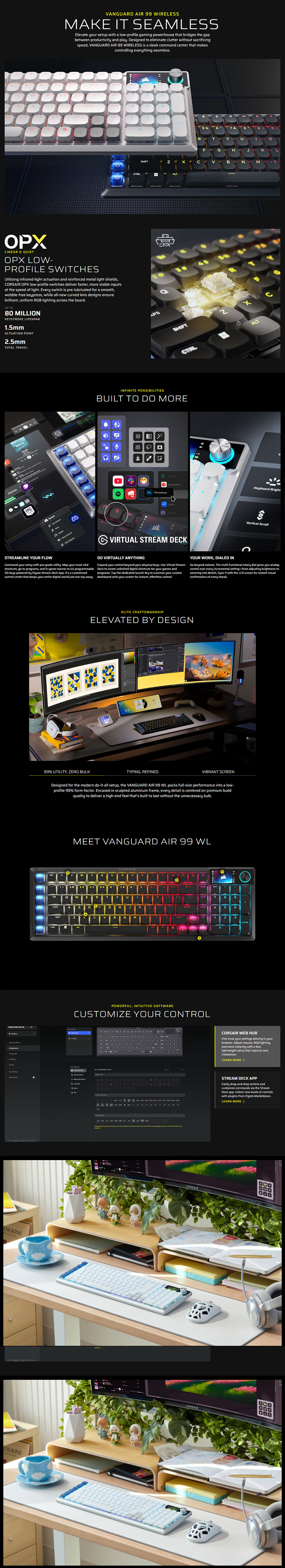 Corsair Vanguard Air 99 Wireless 8kHz 光學矮軸三模無線鍵盤(黑色)