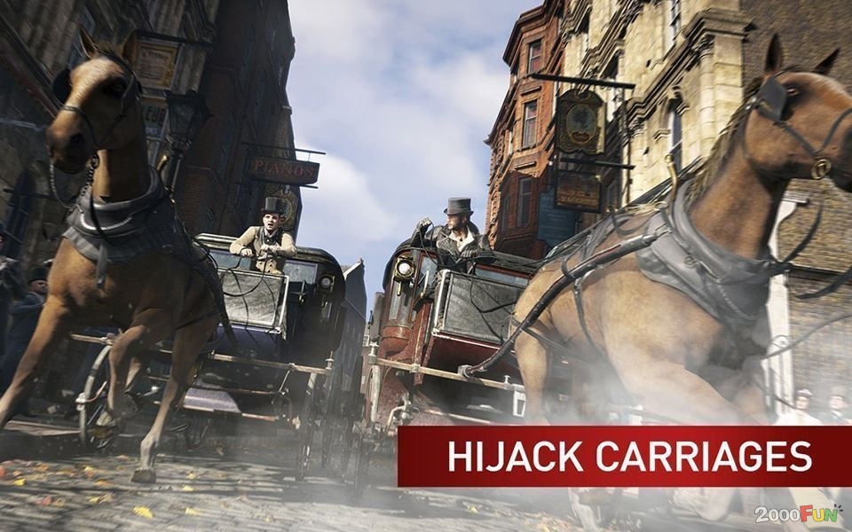 跑酷穿越移動中的交通工具來追蹤敵人或在暗殺突襲後擺脫敵人的追殺。搶劫馬車進行毫無限制的街頭競速或是在泰晤士河上的蒸氣船上點燃毀滅的路徑。