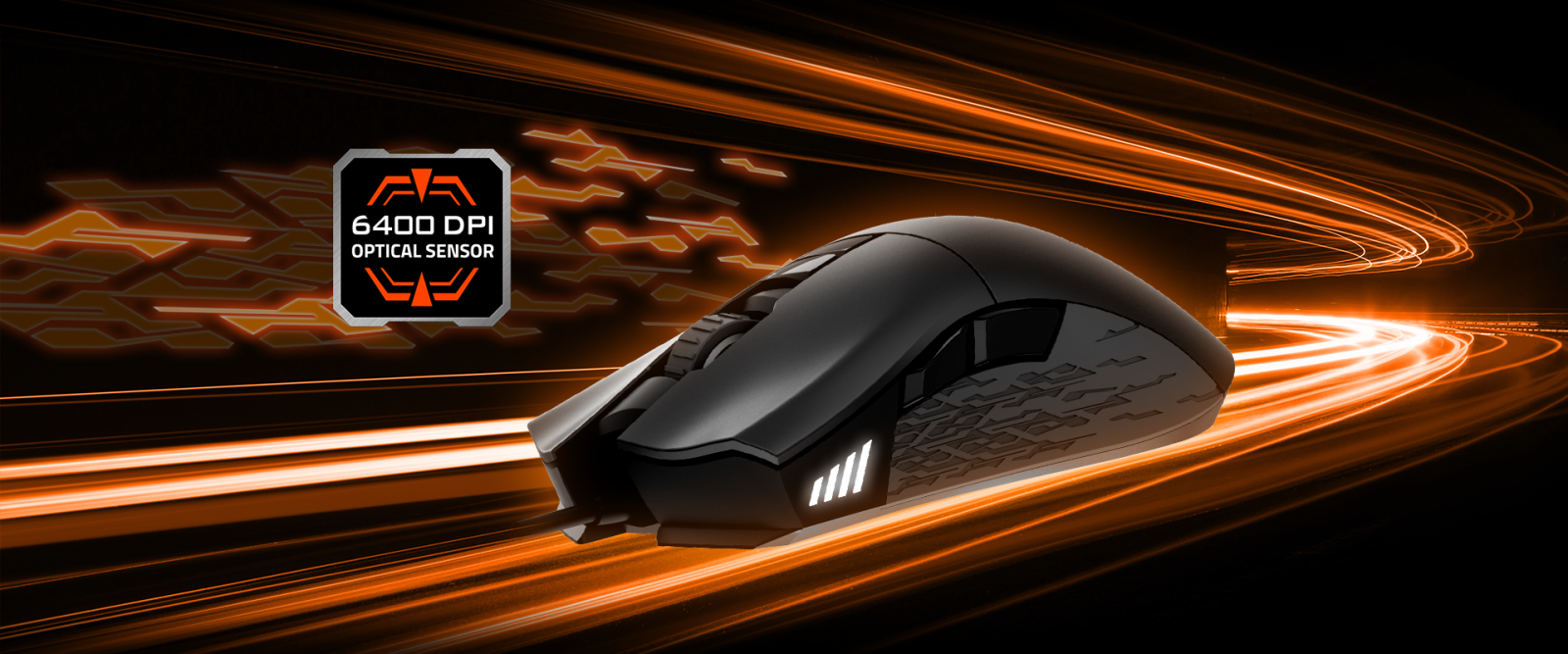 AORUS M3 採用頂級電競光學感應核心(Pixart 3988),可以支援到實體6400dpi,其中DPI值更可依玩家需求,以50dpi為單位微調至最適靈敏度,完全去除玩家更換新滑鼠所需要的適應期,提供玩家極致的操控、速度與精準度。再加上200ips最快速度與50g最大加速度的感應能力,讓電競玩家完全展現自身的能力。