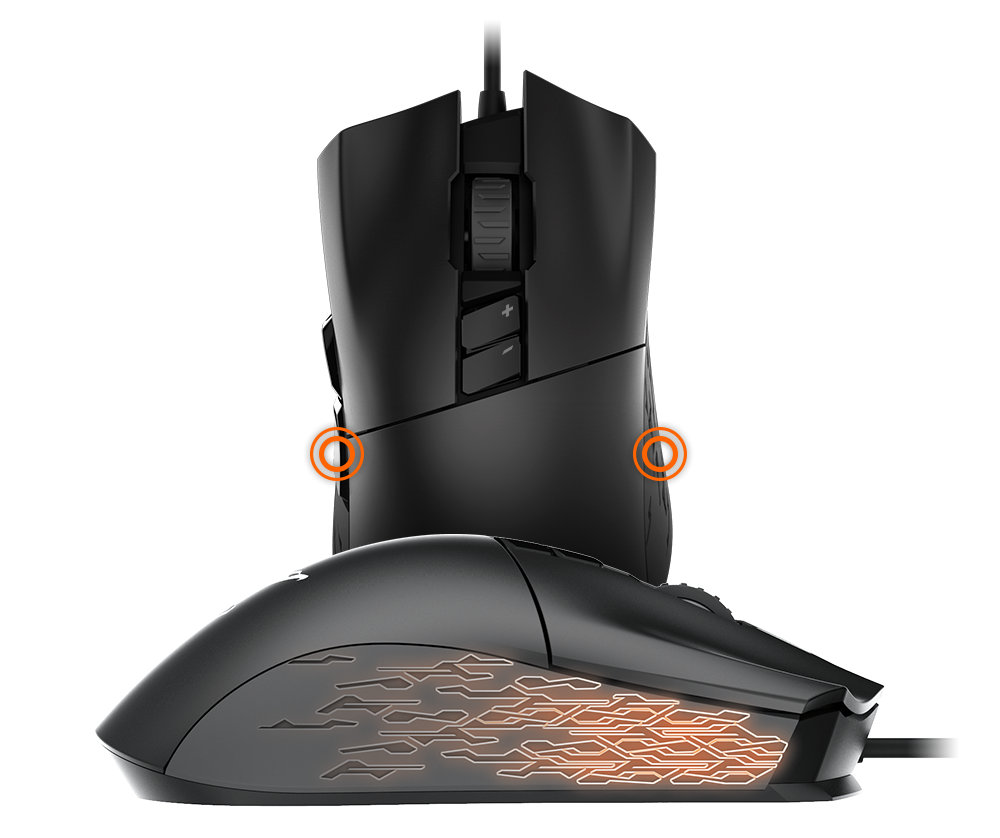 滑鼠雙側邊皆配置防滑橡膠,強調平衡且確實的抓握。