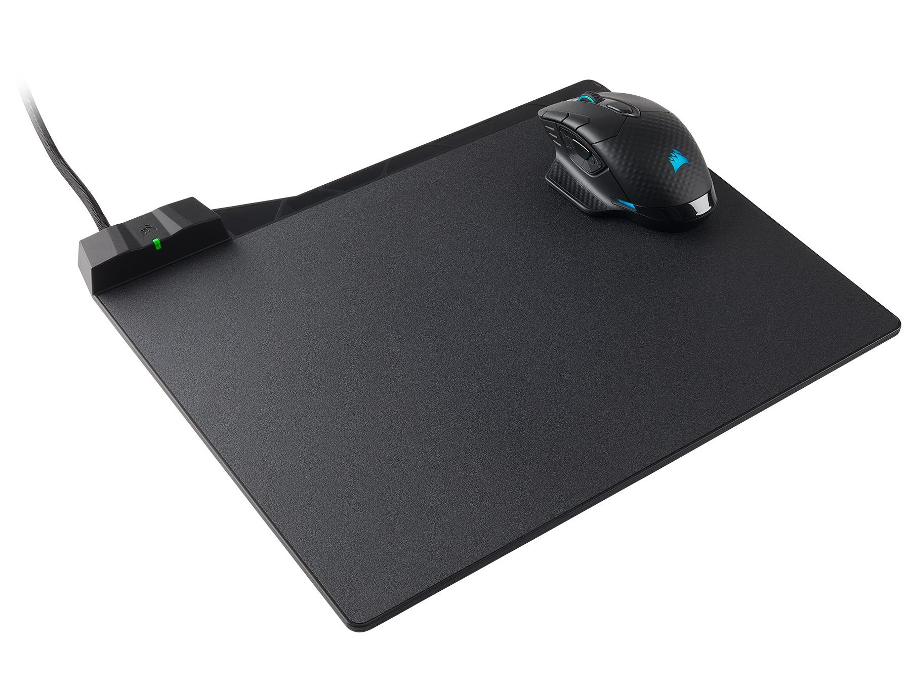 Corsair MM1000 Qi 無線充電滑鼠墊結合 Qi 無線充電的便利性,以及微紋理滑鼠墊的性能,讓玩家可從桌面為任何 Qi 設備充電。