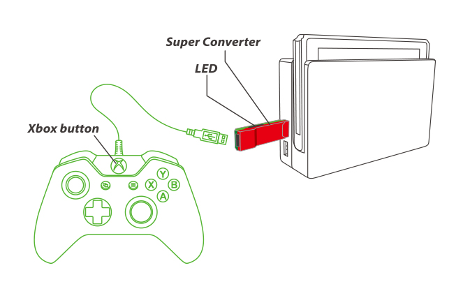 - 每個Super converter一次僅能對應一支Xbox 360或Xbox One 控制器。