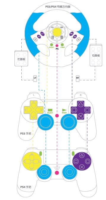 本產品可自動判斷PS3無線手把與方向盤功能,不需要(撥動開關)設定,自動對應PS4按鍵功能。