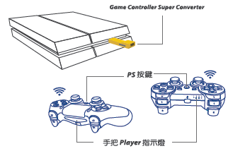 每個Super-converter一次僅能對應一支PS3/PS4無線手把進行控制。